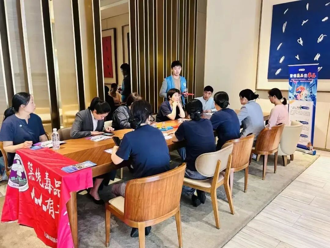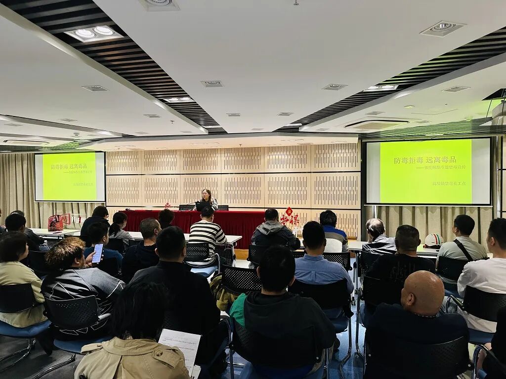 近日,静安区彭浦镇禁毒办来到位于广中西路1099号的全季酒店,为酒店全体员工开展了一场禁毒宣传讲座。 宾馆酒店作为特殊行业场所,很容易会被不法分子选作隐秘的吸毒地点。为了加强员工的禁毒意识,禁毒社工精心准备了宣传折页,并在现场摆放了仿真毒品模型。通过生动的模型展示,详细讲解了吸食毒品的严重后果和身体表现,同时教授大家如何准确辨别和预防毒品,希望每个人都能为构建无毒社会贡献自己的一份力量。