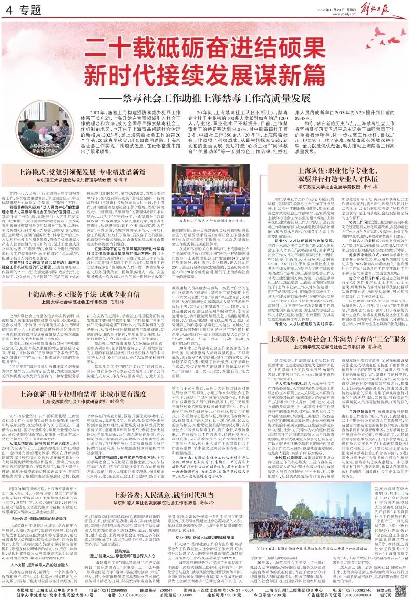2003年,随着上海构建预防和减少犯罪工作体系正式启动,上海开始在禁毒领域引入社会工作的理念和方法,成为全国最早探索禁毒社会工作机制的地区,也开启了上海毒品问题社会治理的新格局。2023年,是上海禁毒社会工作的第20个年头,20载春华秋实,时光如白驹过隙,上海禁毒社会工作实现了跨越式发展,在砥砺奋进中结出了累累硕果。