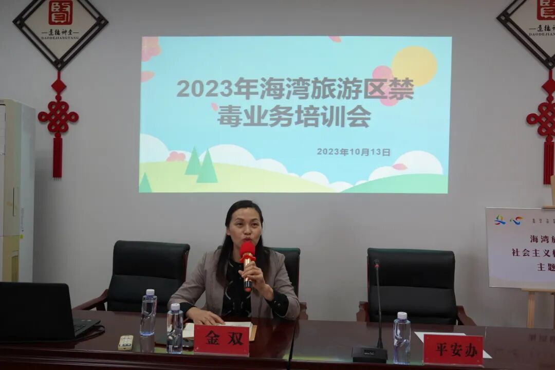 为进一步提高基层禁毒工作人员的业务能力和素质,扎实推进禁毒工作落实到位,10月13日下午,奉贤区海湾旅游区禁毒办举办2023年禁毒业务培训会,特邀区委政法委禁毒室主任金双授课。海湾旅游区禁毒办、平安办、进贤中心海湾旅游区工作点全体工作人员、各村(居)委综治干部、禁毒志愿者等参加培训。