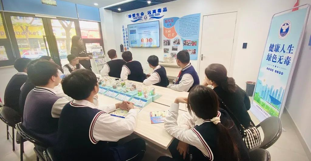 浦锦街道平安办以开展反恐演练为契机组织禁毒社工来到浦江一中,利用学生课间时间开展了以“远离毒品 健康成长”为主题的禁毒宣传活动。