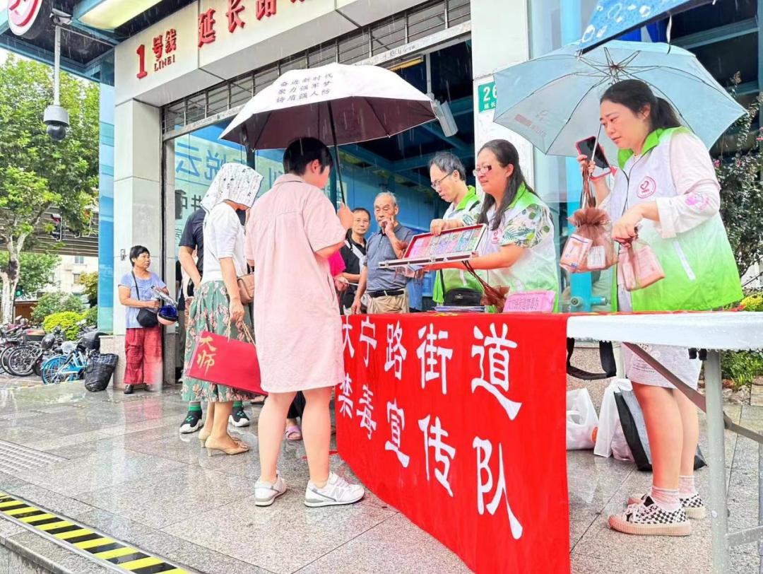 ?8月28日,静安区大宁路街道禁毒办在延长路地铁口开展一场禁毒宣传活动,用行动践行“风雨同行,守护无毒路”的信念,向社区居民传递重要的禁毒信息。