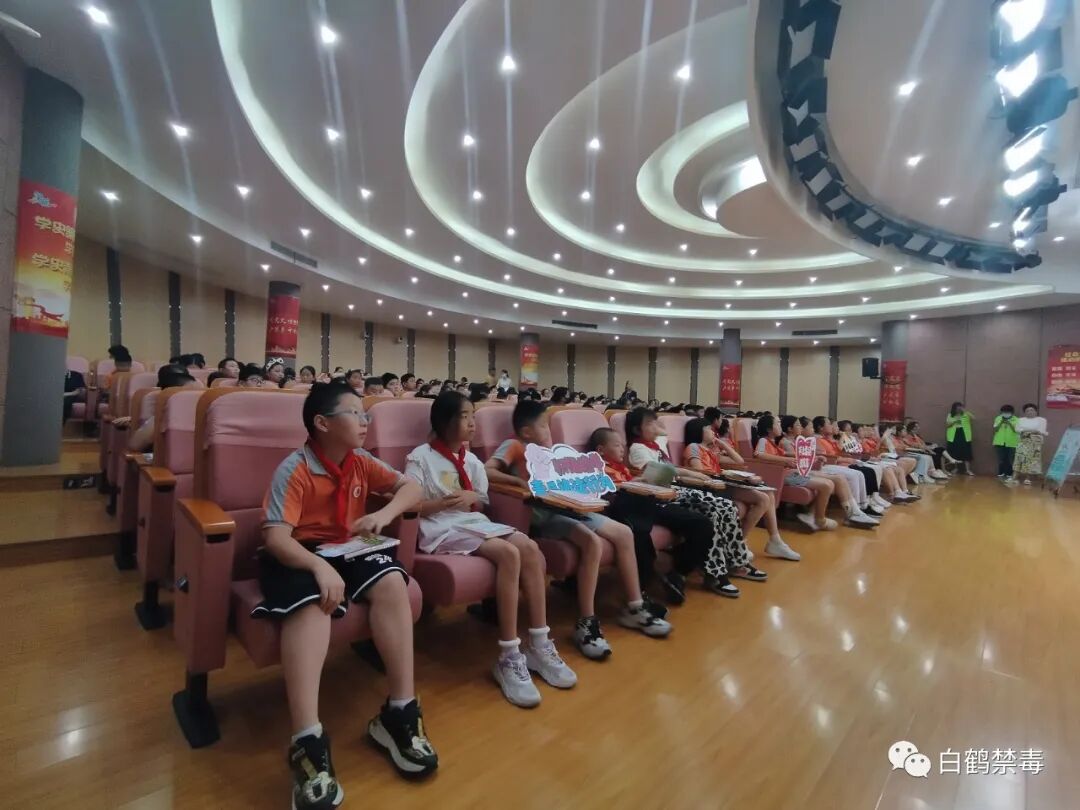 为了积极营造校园禁毒宣传教育氛围,引导在校青少年学生切实提升识毒、防毒、拒毒的意识和能力,养成积极向上的世界观、人生观、价值观。9月6日下午一点,白鹤镇禁毒办邀请夏阳戒毒所民警携禁毒社工和禁毒志愿者一起走进了白鹤小学,利用新生开学之际,开展警惕新型毒品“依托咪酯”,禁毒宣传进校园活动。