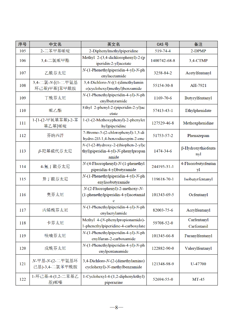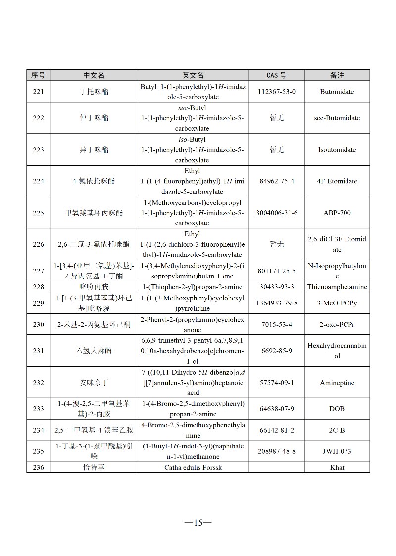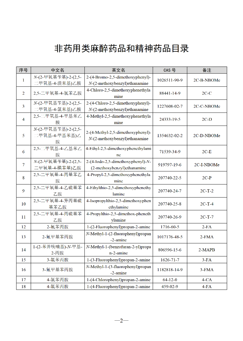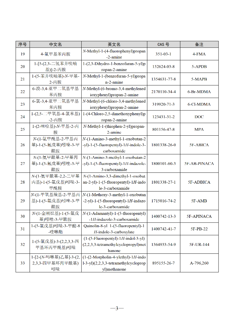 三部门联合发布最新版《非药用类麻醉药品和精神药品目录》