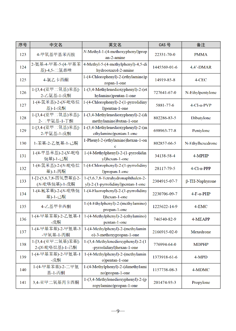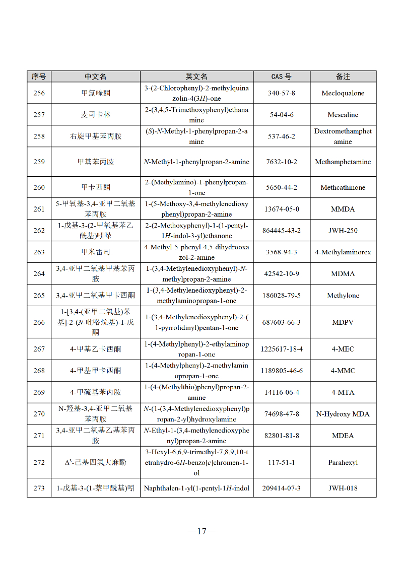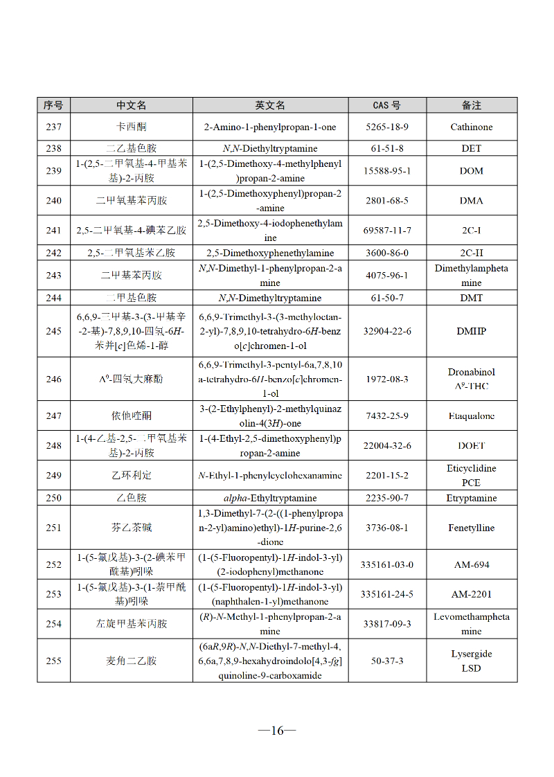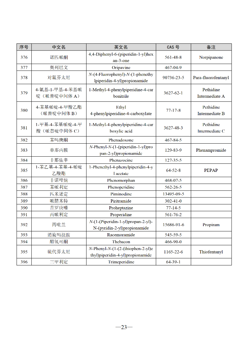 三部门联合发布最新版《非药用类麻醉药品和精神药品目录》