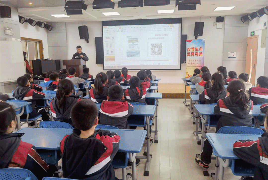 4月3日下午,宝山区吴淞街道社区平安办和自治办协同组织吴淞社工点禁毒社工和浦东新区爱心树生命关爱中心的工作人员来到同泰路小学,为五年级的师生们开展了一堂主题为“无毒青春 健康人生”的禁毒宣传活动。
