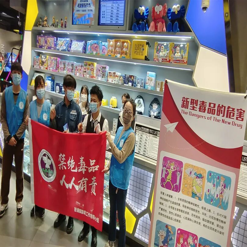 彭浦镇禁毒办前往辖区内大融城MELAND亲子乐园进行禁毒宣传。禁毒社工向店内工作人员及来往顾客详细讲解新型第三代毒品常见特性种类,吸食后果等。同时通过展示仿真禁毒宣传品,帮助直观了解毒品,解读吸毒成瘾症状。此次宣传活动现场受众50余人,获得了良好的社会效果。