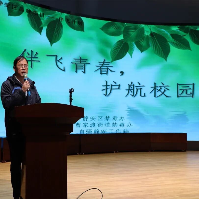 曹家渡禁毒办来到辖区内的同济大学附属七一中学以“伴飞青春,护航校园”为主题给全校700多名师生上了一堂生动有趣的青少年毒品预防教育专题讲座,展示了毒品仿真样品并组织了禁毒小游戏。