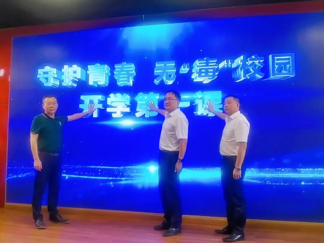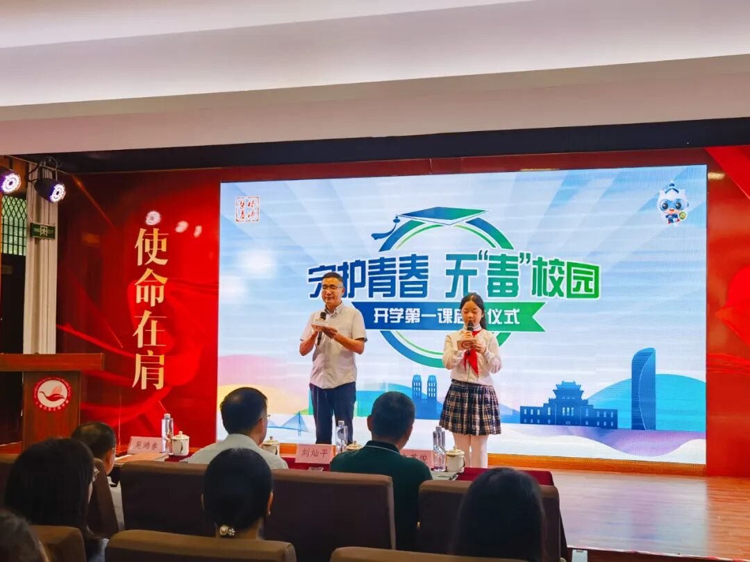 区委政法委副书记、区禁毒委副主任(区禁毒办主任)刘灿平,区教育局副局长、区禁毒委副主任曾除非,区定海路街道政法书记史英俊共同启动杨浦区“开学第一课”禁毒主题教育活动。