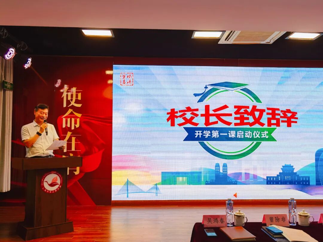 东辽阳中学校长吴鸿春致欢迎词,提到:勿临渴而掘井,宜未雨而绸缪。学校禁毒教育使学生参与其中、融入其中,让毒品危害牢记于心,在“家校社”多元互动中、合力育人,不断扩大毒品预防教育覆盖面和影响力,取得“教育一个孩子、影响一个家庭、带动整个社会”良好效果。