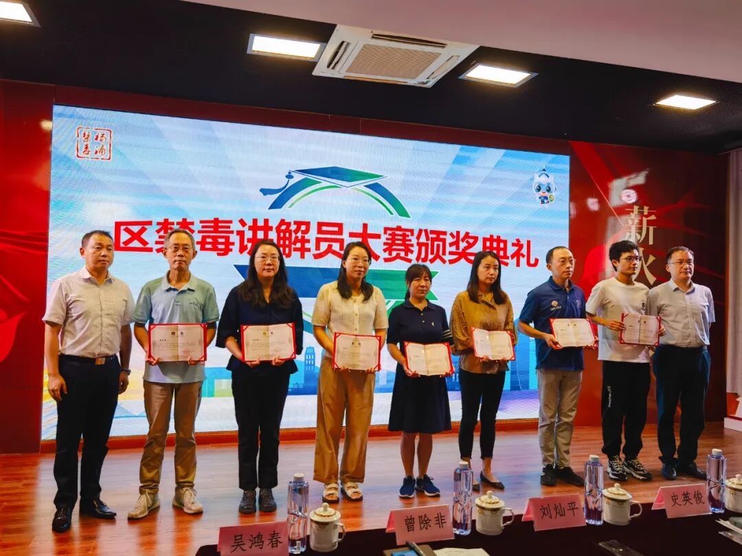 刘灿平、曾除非同志共同为上海市禁毒讲解员大赛杨浦赛区一二三等奖获得者颁发证书。