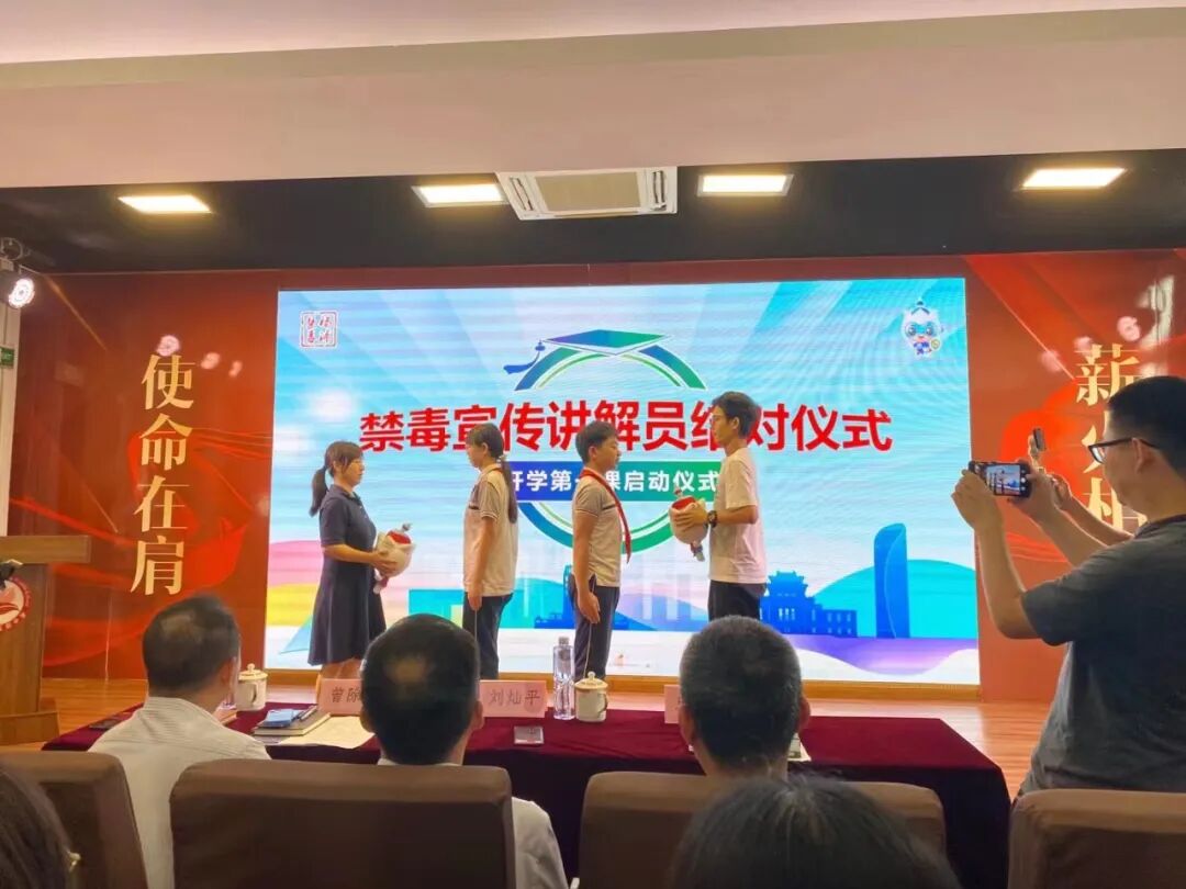 区禁毒普法宣讲团特聘讲师、市高境戒毒所民警陈袁曦为学生们进行了题为“珍爱生命、拒绝毒品”的禁毒科普授课。