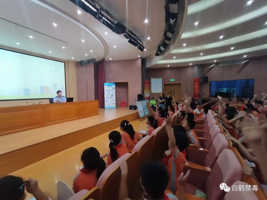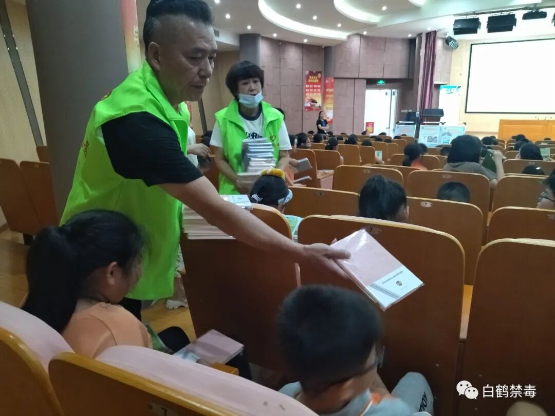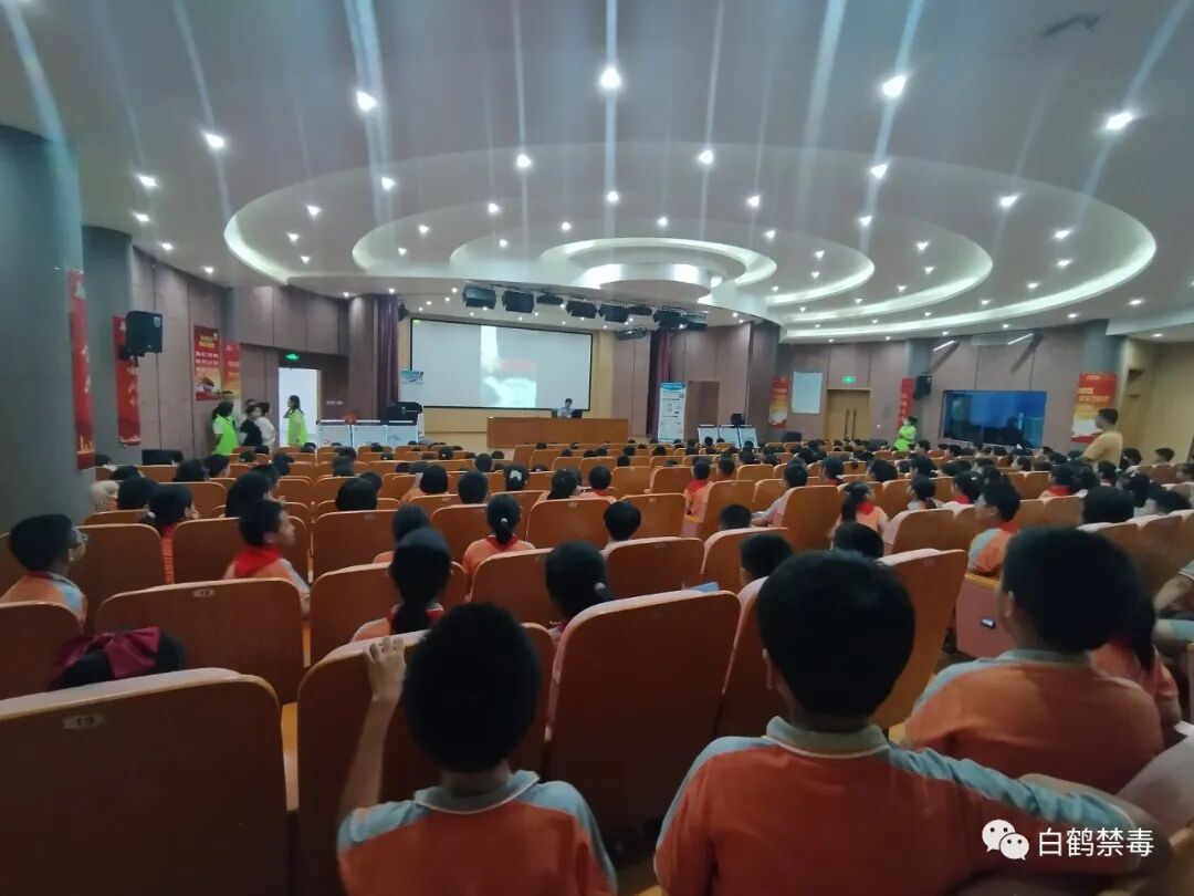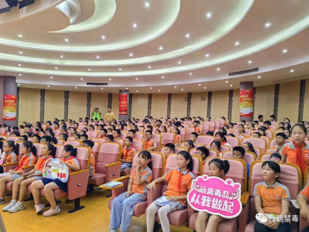 为了积极营造校园禁毒宣传教育氛围,引导在校青少年学生切实提升识毒、防毒、拒毒的意识和能力,养成积极向上的世界观、人生观、价值观。9月6日下午一点,白鹤镇禁毒办邀请夏阳戒毒所民警携禁毒社工和禁毒志愿者一起走进了白鹤小学,利用新生开学之际,开展警惕新型毒品“依托咪酯”,禁毒宣传进校园活动。