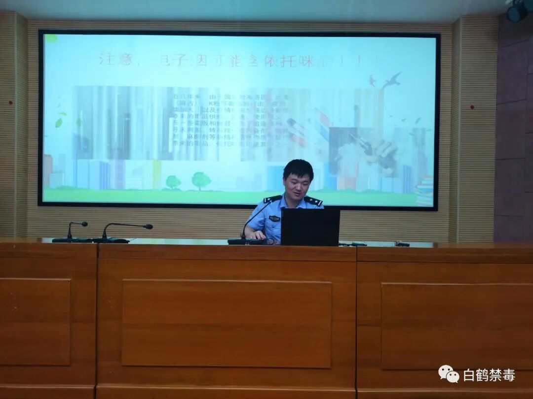 活动中,徐警官结合工作实际向同学们上了一堂生动的禁毒知识普及课。详细介绍了毒品的种类和危害,普及禁毒相关法律法规。重点讲解新精神活性物质的种类、危害以及如何防范、识别新型毒品,特别针对新型毒品替代品“依托咪酯”的电子烟外观、滥用方式、吸食后的状态以及危害等知识,并通过播放“依托咪酯”宣传短视频增强学生们对此类新型“电子烟”的认识,告诫学生们要珍爱生命,树立正面健康的生活观念,警惕陌生人,谨慎交友,远离高危场所。