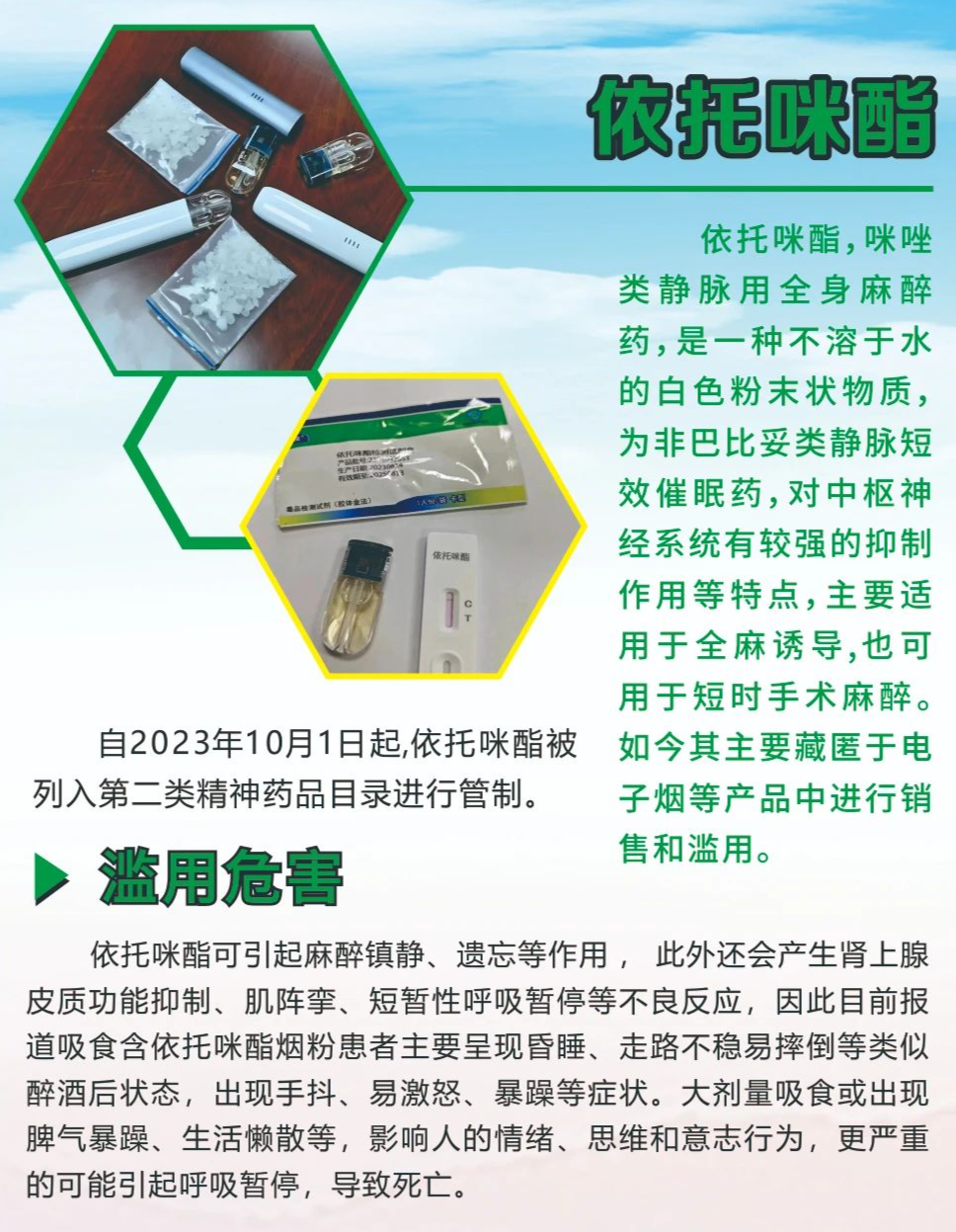 贩卖依托咪酯就是贩毒! 吸食依托咪酯就是吸毒!珍爱生命 远离毒品
