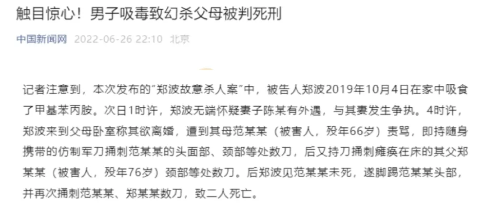在思维方面,吸食冰毒者会从最开始的多疑、敏感,发展为偏执观念或妄想,并伴有相应的情绪变化。严重者出现精神错乱、焦虑、烦躁、幻觉状态,有人怀疑自己的脑子里被安装了窃听芯片,有人产生幻觉、自伤伤人、杀妻弑母、残害亲子、绑架人质等。暴力行为在冰毒上瘾者中屡见不鲜。