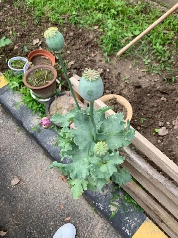 “你快来看,这个植物长得好奇怪啊,它的果子是立着的。”5月12日放学后,小徐和小吴相约在小区里打羽毛球。捡球时,小吴意外发现几株顶着青绿色圆球的奇异植物。“这个怎么长得有点像罂粟,不会是毒品吧。”小吴想到之前学校开展禁毒宣传时老师展示的照片,和小徐说出了自己心中的猜测。