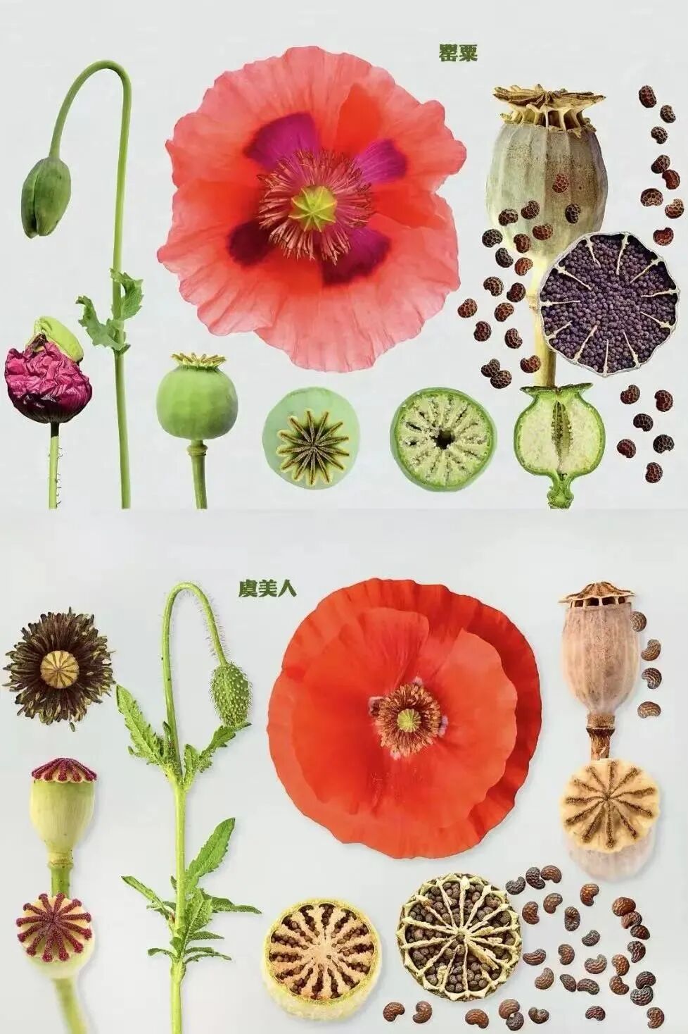 截取自“中国国家地理旗舰店”小红书。罂粟和虞美人同属于罂粟科罂粟属的物种,从形态上来看,罂粟植株几乎无毛或者只有很少的毛,整体看较为光滑;虞美人的植株生有密集的毛。