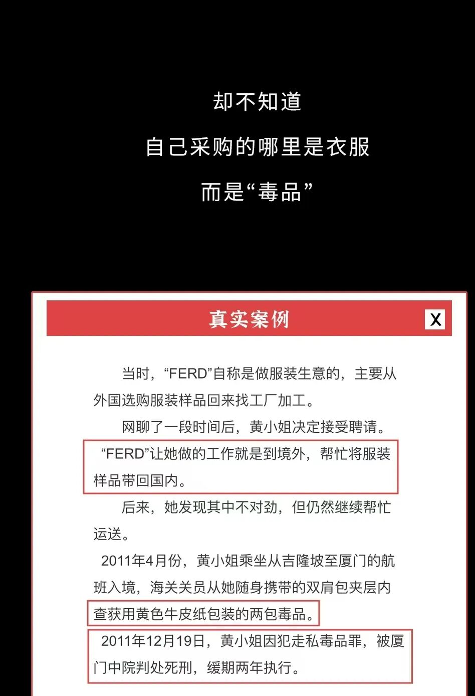 我们普通人要做的只有远离毒品,以及尽可能得保护自己,不被毒贩利用,不成为贩毒的帮凶。希望大家永远都遇不到这些事。