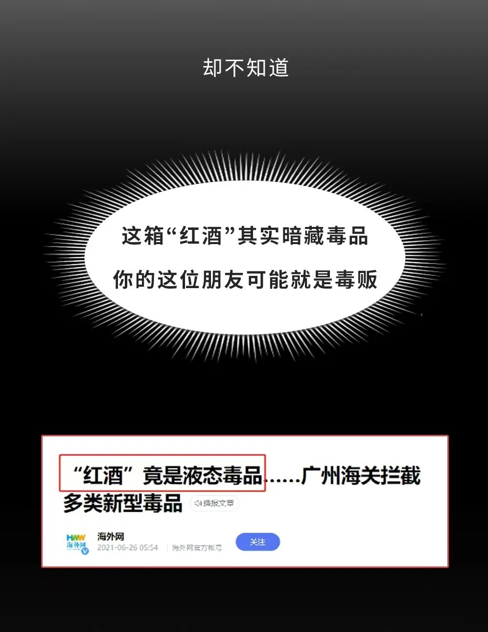 你马上就要回国了,朋友让你帮他带一箱“红酒”回国,并向你支付路费和报酬,这是一个顺手的事,你并没有怀疑什么。却不知道这箱“红酒”其实暗藏毒品,你的这位朋友很有可能是毒贩。如果通过海关,顺利回国,他们会安排“家人”接应你。你当了帮凶,却永远被蒙在鼓里。如果这箱“红酒”被卡在安检口,而找你帮忙带红酒的人可能早就跑路了。利用熟人、恋人帮忙携带毒品的案例真的屡见不鲜。所以,甭管是多熟的朋友,也不要帮人随便带东西出入境,这年头又不是发不了国际快递。