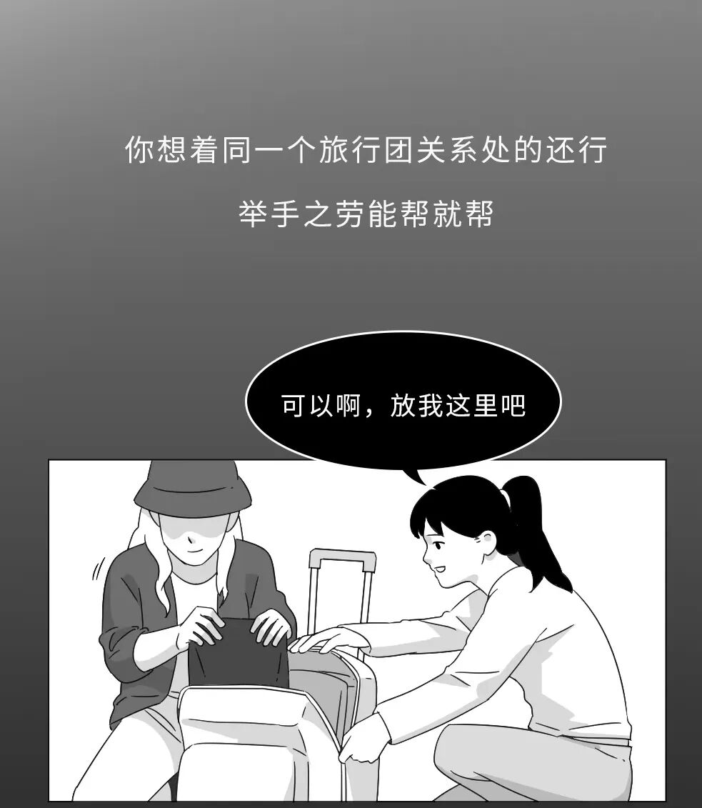旅行团成员让你帮忙分拿一些东西,你想着同一个旅行团关系处的还行,举手之劳能帮就帮,等出事了,他早就跑了,本来就是萍水相逢的人,联系方式一删你根本找不到人,还是那句话,不要轻易给别人带东西。