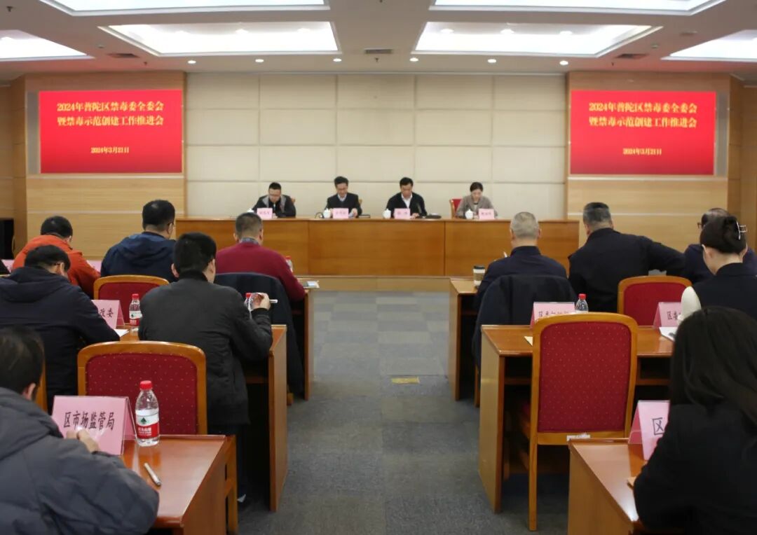 3月21日,2024年普陀区禁毒委全委会暨禁毒示范创建工作推进会召开,深入学习贯彻习近平总书记关于禁毒工作的重要指示精神,进一步明确今年禁毒工作任务要求。区委常委、政法委书记、区禁毒委主任张伟对2024年禁毒工作提出具体要求。市禁毒办主任周国庆出席会议并讲话。区委政法委副书记徐兆吉主持会议。
