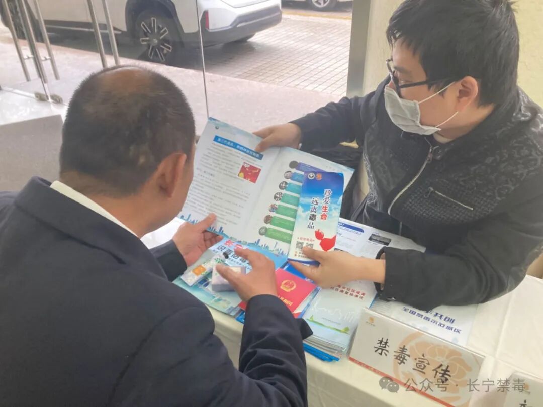 2024年4月30日中午,长宁区新华路街道牵头组织禁毒、法宣等相关部门以及禁毒志愿者等赴生物大厦开展“组团式公益服务送上门”大型志愿服务活动。