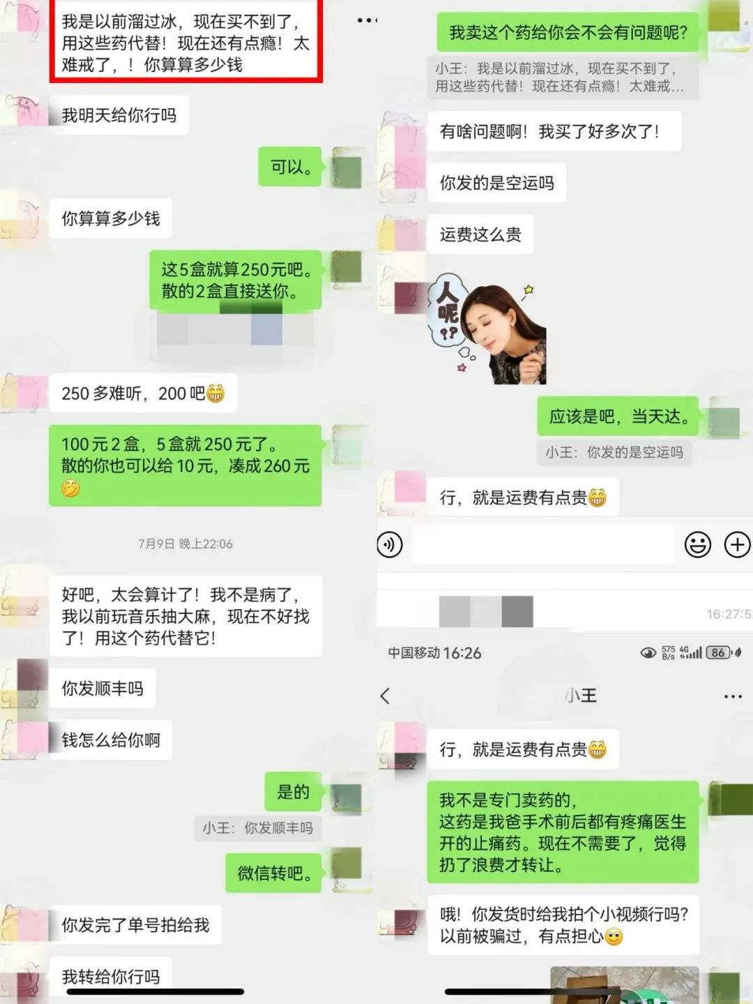 她加了一个转卖药品的微信群