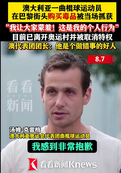 澳大利亚奥委会在一份声明中说,克雷格没有被定罪,但受到了法国执法机构的警告。澳大利亚代表团团长安娜·米尔斯在声明中说,“我无法宽恕他的所作所为。他是一个好人,却作出了一个错误的决定。他要为这样的决定承担后果。因此,汤姆将失去所有剩余的奥运运动员特权。他已经搬出了奥运村。”